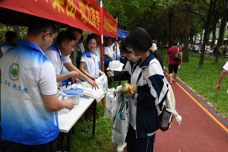 “高考加油!”“這邊有礦泉水和文具大家可以免費領(lǐng)取。”6月7日清晨,2024年全國高考首日,設(shè)在三亞市第一中學(xué)門口的“環(huán)農(nóng)集團(tuán)志愿服務(wù)點”格外忙碌,集團(tuán)“小水滴志愿服務(wù)隊”的志愿者們向經(jīng)過的考生及家長送上礦泉水、菊花茶,還貼心為考生們準(zhǔn)備了中性筆、涂卡筆、橡皮等文具,為高考學(xué)子加油助力。